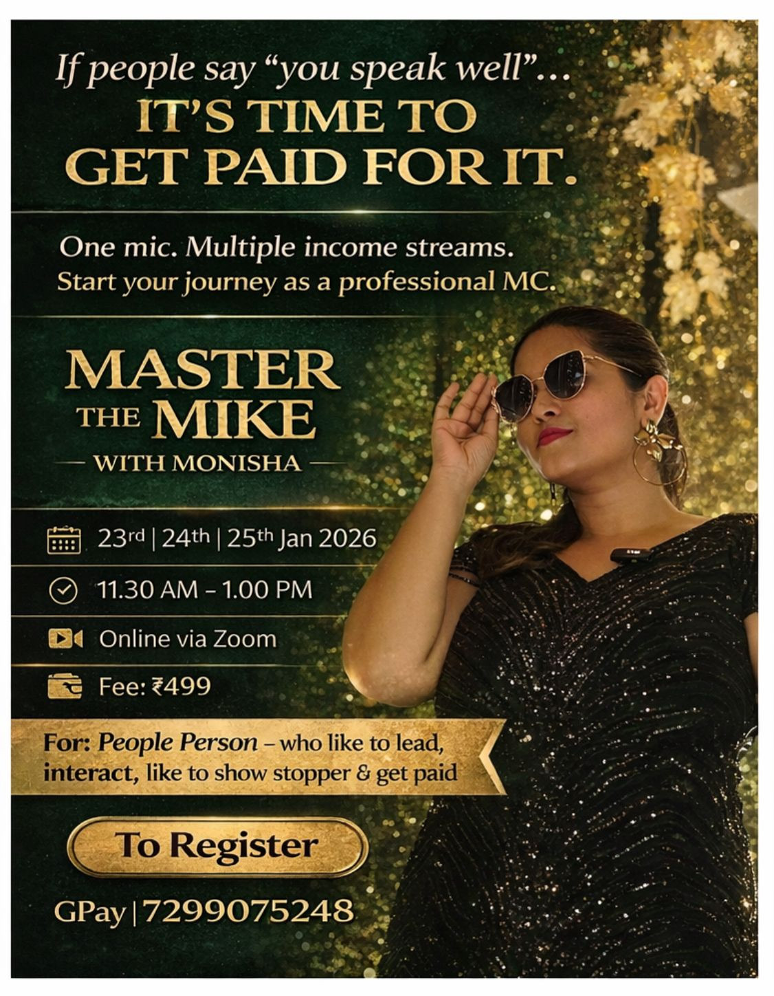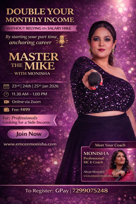 "Master the Mike with Monisha" that teaches participants to become professional MCs and earn from it.
